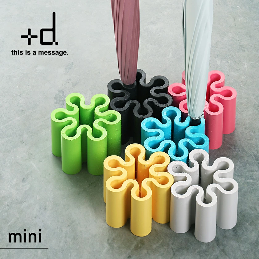 コンパクト傘立てのロングセラーグッズ、プラスディーのスプラッシュ。こちらは最大7本まで傘が収納できるミニタイプです。直径120mmととてもコンパクトで邪魔になりません。水たまりにできる水はねをモチーフにしたおしゃれなデザインにカラフルなカラーバリエーションで玄関も映えます。