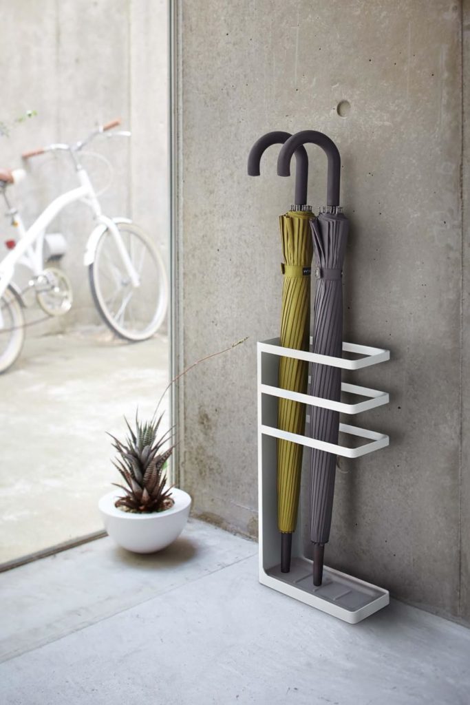 奥行きが10cm程度のスリムサイズの傘立ては、玄関の隅に納まるので、スペースの有効活用ができます。ただし、倒れやすいものもあるので、安定感があるものを選びましょう。