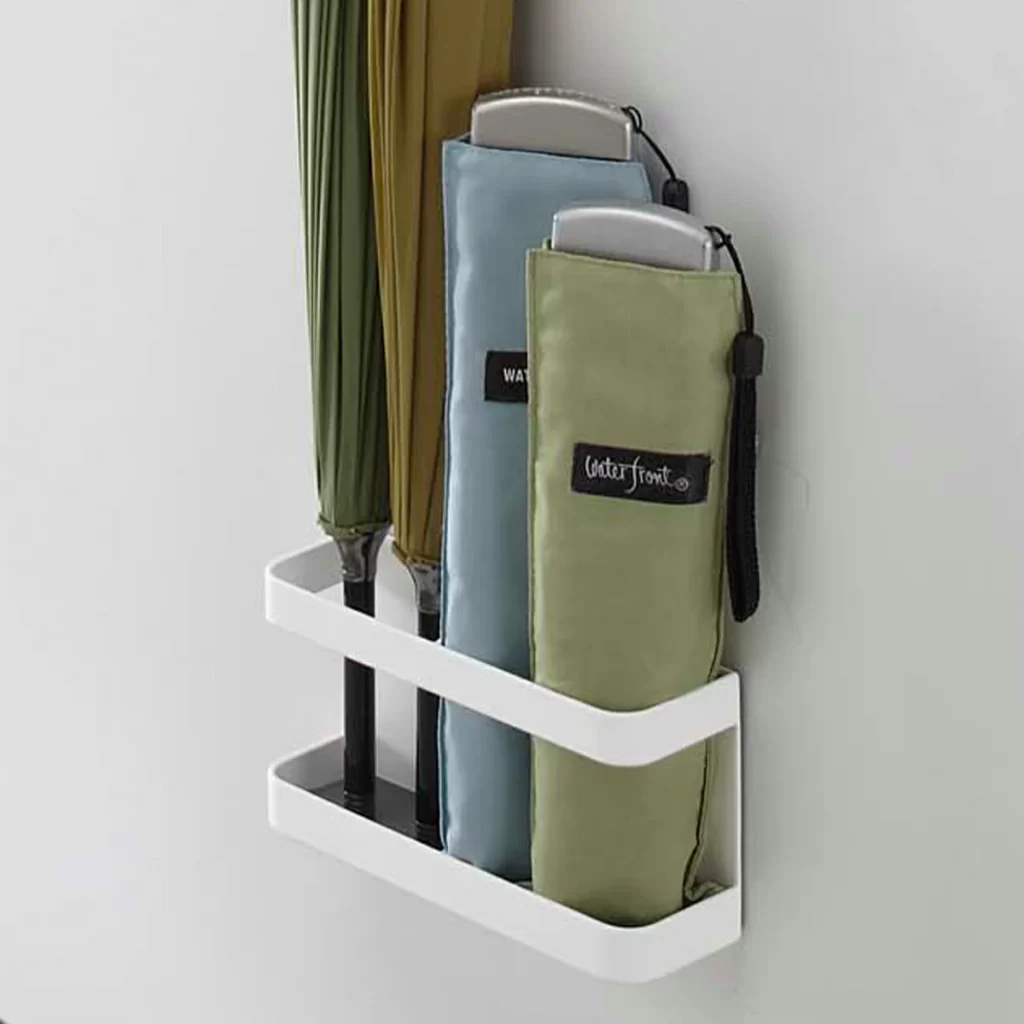 マグネットタイプの傘立ては、金属製の扉などにつけて使用ができるので、靴を置くスペースの邪魔にもならず、玄関を広く使えます。