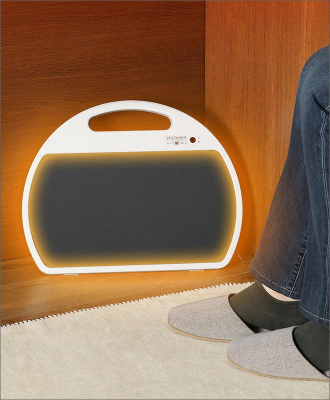 オフィスデスクや勉強机の下、ソファに座った時の足元、こたつに入ったときの背中など、スポット暖房に最適な折り畳み式デスクパネルヒーター。3つに折りたためば、持ち運びも楽々でコンパクトに収納できます。