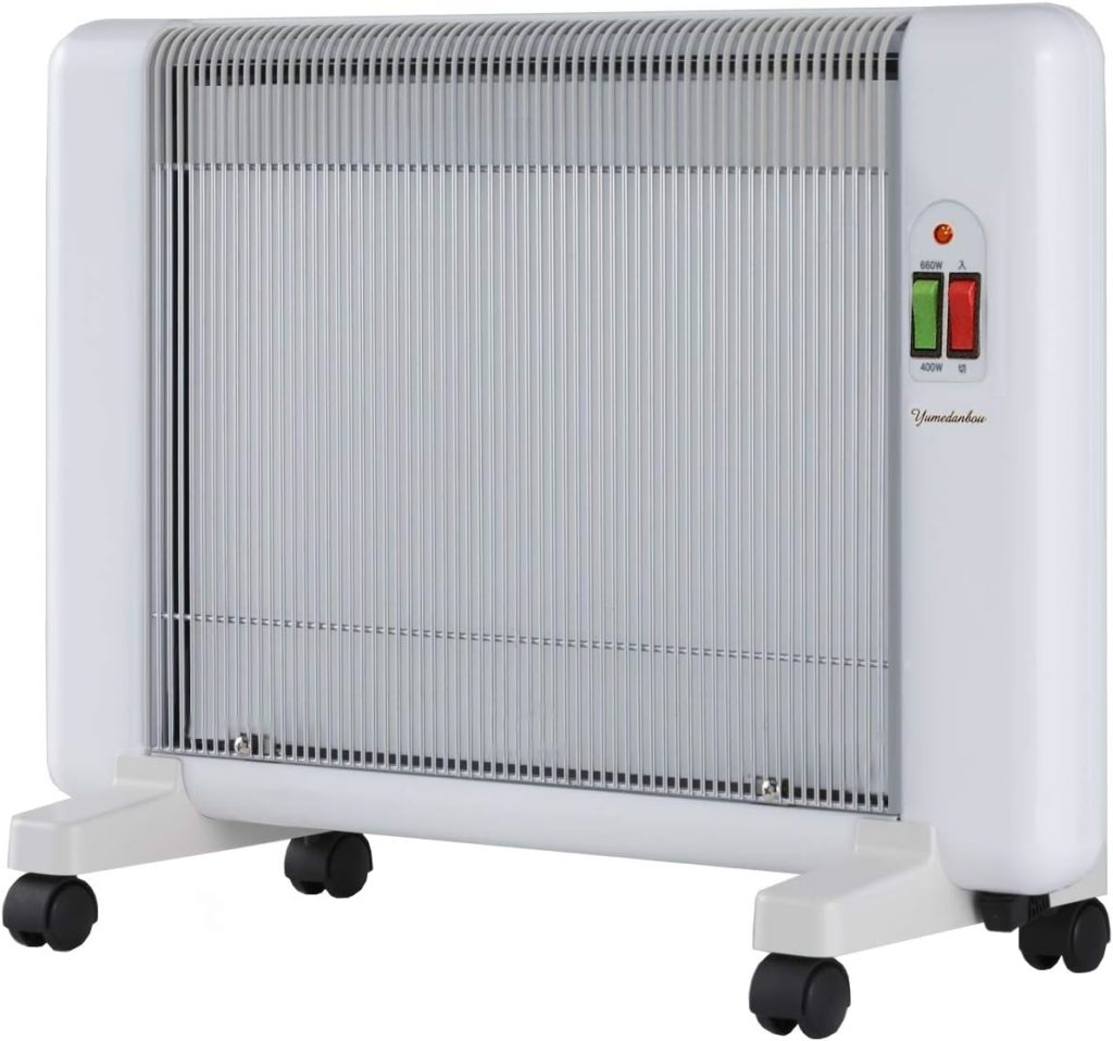 山善の薄型ミニパネルヒーター。機能は最低限でなにより安い。床置きでも奥行15cmとスリムでコンパクトな暖房なので、トイレなどの狭いスペースにも設置でき、お風呂に入る前に脱衣所においておけば、入るときも出る時も体が冷えるのを抑えられます。