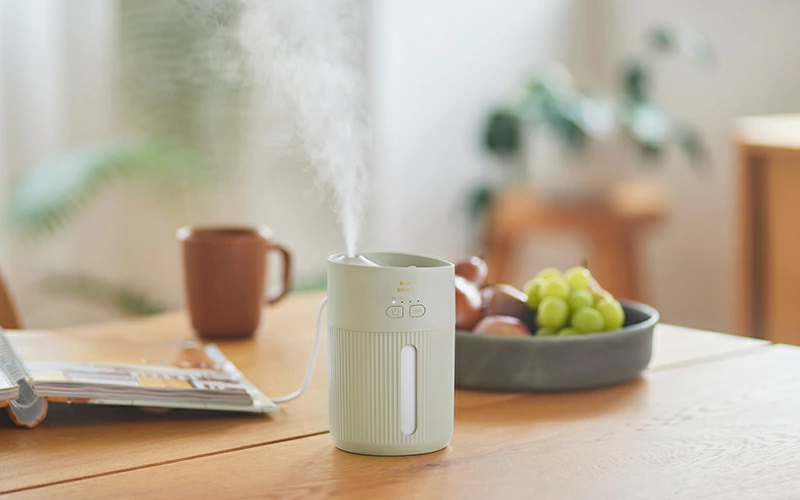 机の上やパソコン周りなど限られたスペースで使うなら、300〜500ml程度の容量が使い勝手と効果のバランスがちょうどよくおすすめです。短時間のみ使う場合や、旅行先や外出先で使う携帯用の場合は、200ml前後のコンパクトモデルや、コップやペットボトルに挿し込むタンクレスタイプだと、持ち運びもしやすく使い勝手がよいでしょう。